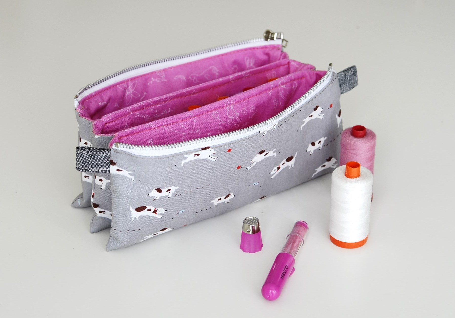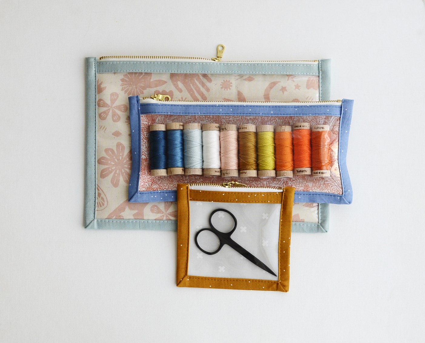 I get asked a lot about where I buy my zippers. The ones in these pouches are all from Zipit on Etsy which is where I purchase almost all of mine. The metal ones at the top are the ones with donut shaped pulls.