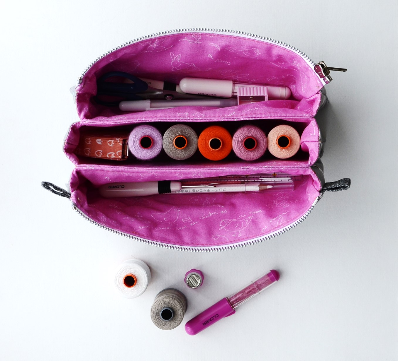 With summer on the way, I'm hoping that this will be the perfect pouch to take with you whilst out and about. It will also work very nicely for when you need to make a quick gift. If you want to use it as a non sewing pouch, just leave out the pincushion and felt and you have a handy travel pouch. Kids would also love one for pens and small toys too.